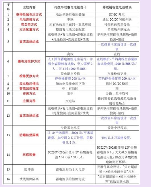 應(yīng)用中可取代常規(guī)設(shè)計(jì)的“充電機(jī)+蓄電池組+蓄電池巡檢” 裝置組合,以多模塊并聯(lián)冗余方式,解決常規(guī)蓄電池串聯(lián)產(chǎn)生的“個(gè)體質(zhì)量影響整組”、“不能在線維護(hù)”、“新舊電池難以匹配”等問(wèn)題;以不同性質(zhì)負(fù)荷分組配置電源方式,減少負(fù)荷間干擾,提高直流電源可靠性;以按負(fù)荷間隔分散布置,然后多模塊并聯(lián)冗余方式,解決直流電源分散布置問(wèn)題……。