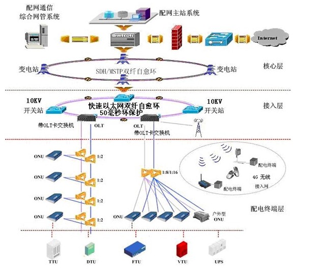 | 配網(wǎng)自動化通信網(wǎng)絡(luò)由各配電子站、配電中心站的通信設(shè)備通過特定的通信媒介組成。隨著智能配電網(wǎng)的提出,配電網(wǎng)自動化的信息采集及指令傳送成為電力通信面臨的新課題。由于配電網(wǎng)設(shè)備數(shù)量大、種類多、分布廣,如何在滿足供電可靠性的基礎(chǔ)上,選擇適合我國配電網(wǎng)現(xiàn)狀并滿足用戶需求的可靠而經(jīng)濟(jì)的通信方式顯得至關(guān)重要。 福建毅天憑借在電力通信領(lǐng)域多年經(jīng)驗的積累,根據(jù)電力系統(tǒng)配網(wǎng)自動化的特點,融合了現(xiàn)有各種通信技術(shù),包括MSTP、EPON、工業(yè)以太網(wǎng)交換機(jī),以滿足配網(wǎng)自動化的各種需求。實現(xiàn)配網(wǎng)自動化的實時監(jiān)視、數(shù)據(jù)采集、分析系統(tǒng)目前狀態(tài)等功能。 |