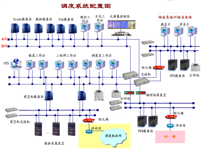 集成了數據采集和監視控制(SCADA)、自動發電控制(AGC)、自動電壓控制(AVC)、廣域向量量測系統(WAMS)、電網分析軟件(PAS)、在線決策系統、智能調度(預警預控、故障診斷、故障恢復)、調度員培訓仿真(DTS)、調度管理系統(OMS)、WEB等各個應用子系統。