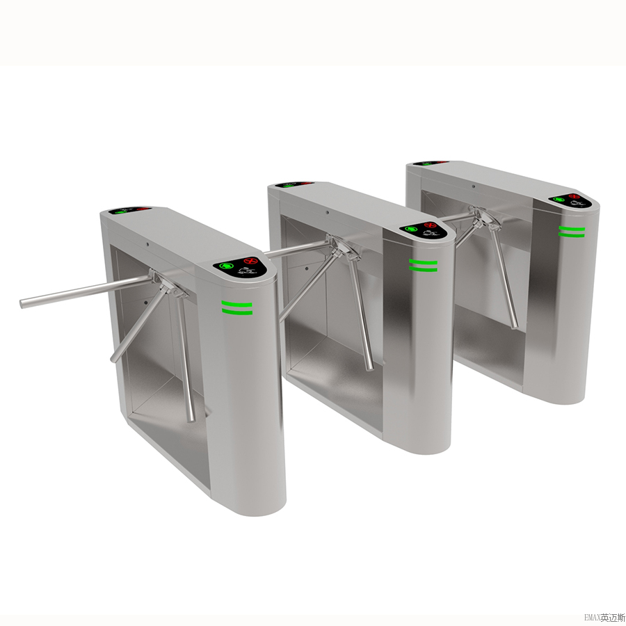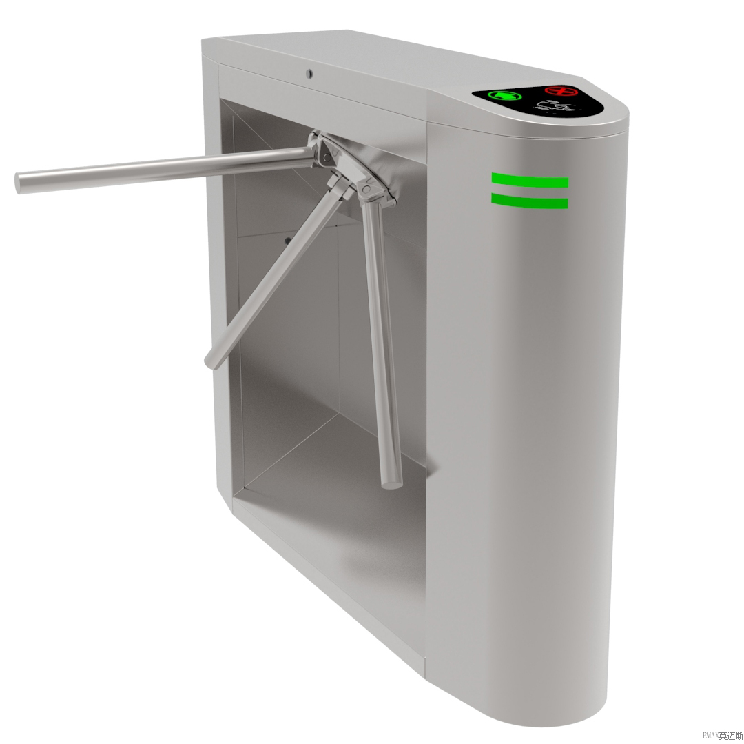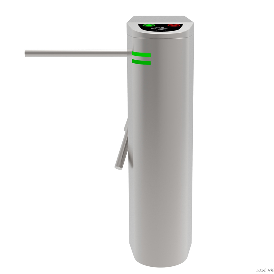 EMAX智能三輥閘系列產品外形采用304不銹鋼板沖壓成型,造型美觀大方,防銹、耐用,而系統對外采用標準的電氣接口,可方便的將條碼卡、ID卡、IC卡、指紋、靜脈、人臉等讀寫設備集成在本設備上,這是我公司自行開發、研制、生產的智能通道管理設備,通過選配各種身份識別系統設備和采用性能可靠的安全保護裝置、報警裝置、方向指示等,即可完成對通道通行的智能化控制與管理。從而為出入人員提供有序文明的通行方式,并可杜絕非法人員進出,同時為了滿足消防通道的要求,在緊急情況下停電落桿,組織人員疏散。